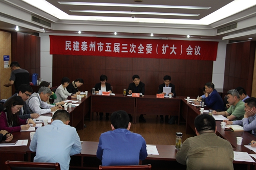 4月19日,民建泰州市委召開五屆三次全委(擴大)會議。民建市委副主委薛晨光、卞賦章、殷紅蘭出席會議,全體市委委員參加會議,各支部主委列席會議。會議由殷紅蘭副主委主持。