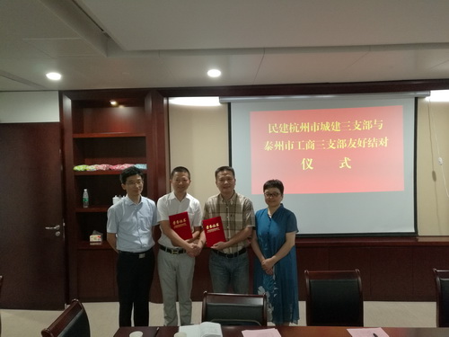 會上,泰州民建工商三支部與杭州民建城建三支部負責人分別介紹了各自支部的基本情況,并舉行了友好結(jié)對儀式。