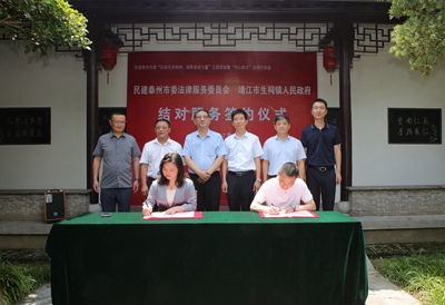 當天,民建泰州市委在生祠鎮還開展了“同心助力”活動,以實際行動弘揚先賢精神。民建泰州市委法律服務委員會與靖江市生祠鎮人民政府現場簽訂結對服務協議,致力以法律服務助力鄉村振興,促進基層治理法治化水平不斷提升。