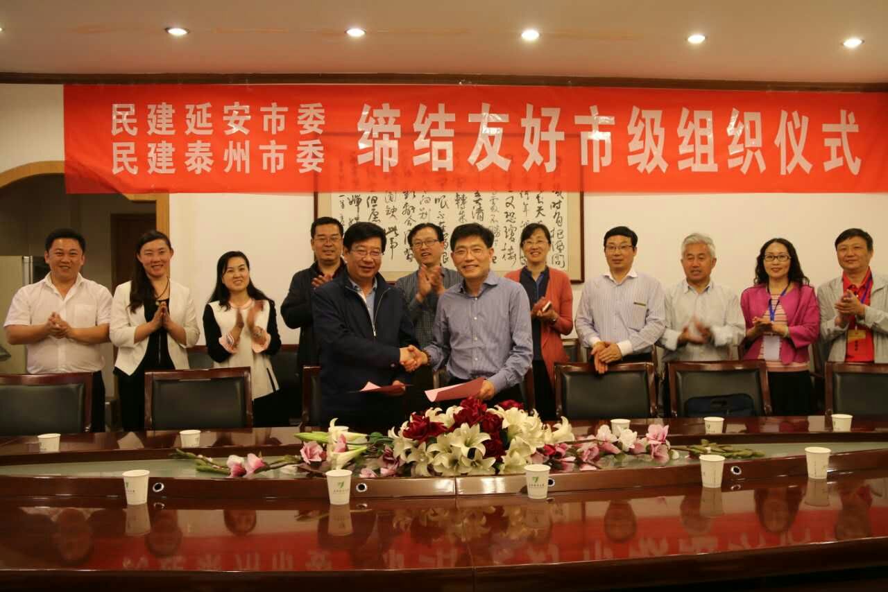 泰州、延安兩地民建市級組織經過共同協商,決定結為友好市級組織。雙方表示,今后將致力于建立長期、穩定的友好關系,促進彼此在參政議政、組織建設、思想建設、機關建設等方面開展多層次、寬領域、全方位友好交流與合作;通過共同舉辦座談會、報告會、聯誼會、調研等活動,就共同關心的問題加強合作,互相學習、交流經驗;發揮兩地“革命圣地”和“革命老區”的特色和優勢,積極組織考察洽談,促進兩地經濟社會發展。
