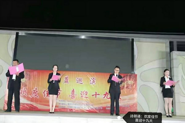 國慶、中秋雙節期間,民建高港區支部舉辦“歡度佳節 喜迎十九大”公益巡演活動。由支部負責人組建的高港區藝林飛揚藝術團和醫藥高新區浪花起舞藝術團的演員分赴高港區、醫藥高新區等地開展公益巡演,為當地群眾獻上喜聞樂見的精彩節目,喜迎黨的十九大勝利召開。
