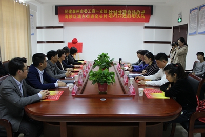 4月18日,泰州民建工商一支部組織會員赴海陵區城東街道窯頭村敬老院開展助老濟困慰問,與窯頭村結對共建,建立“同心工作站”。民建市委專職副主委、秘書長殷紅蘭,海陵區委統戰部常務副部長凌華余為“同心工作站”揭牌。