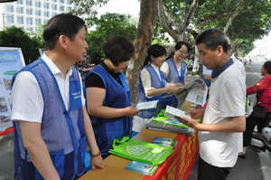 6月5日,民建姜堰區總支聯合區生態環境局在羅塘街道高陳社區開展世界環境日宣傳活動,為市民派發環保宣傳冊,講解環保知識,贈送環保購物袋。