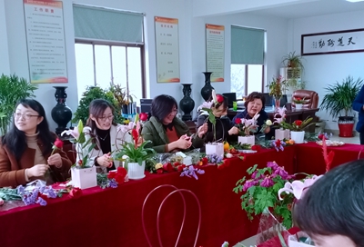 隨后一行人來(lái)到企業(yè)會(huì)議室,在這里為各位女會(huì)員們準(zhǔn)備了插花培訓(xùn)課程,邀請(qǐng)專業(yè)指導(dǎo)老師進(jìn)行插花教學(xué)。現(xiàn)場(chǎng)花香彌漫,一片歡聲笑語(yǔ),一朵朵百合、玫瑰、康乃馨等鮮花在培訓(xùn)老師的指導(dǎo)下被制作成精美的花籃。各位女會(huì)員漸入佳境,邊學(xué)邊比,現(xiàn)場(chǎng)其樂(lè)融融的氣氛給大家?guī)?lái)歡樂(lè)的同時(shí)也增進(jìn)了會(huì)員之間的感情。