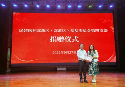 活動最后,民建醫(yī)藥高新區(qū)(高港區(qū))基層委四支部主委蔡劍飛向?qū)W校“思源合唱團(tuán)”捐贈了支持資金。