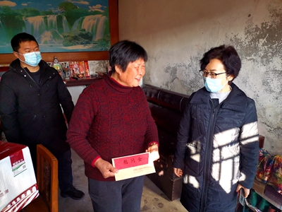 殷紅蘭一行走訪了計生困難戶,與他們話家常,詳細詢問他們的身體情況和生活狀況,致以新春祝福,并送去慰問金和慰問品。