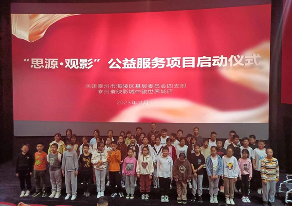 “思源·觀影”公益服務項目由民建泰州市海陵區基層委員會四支部、南京萬達電影城有限公司泰州中駿世界城店承辦,目的是大力傳承優秀傳統文化,開展愛國主義教育,為人民群眾提供喜聞樂見的學習體驗。